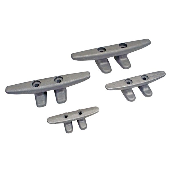 These cast aluminum cleats are sand blasted to give a clean Gris matte finish. Each cleat is designed with an extra wide footprint for added strength. As well, each cleat has an enlarged counter-sunk hole for easy installation with a socket. Can be through bolted or lag bolted. Available in four sizes.